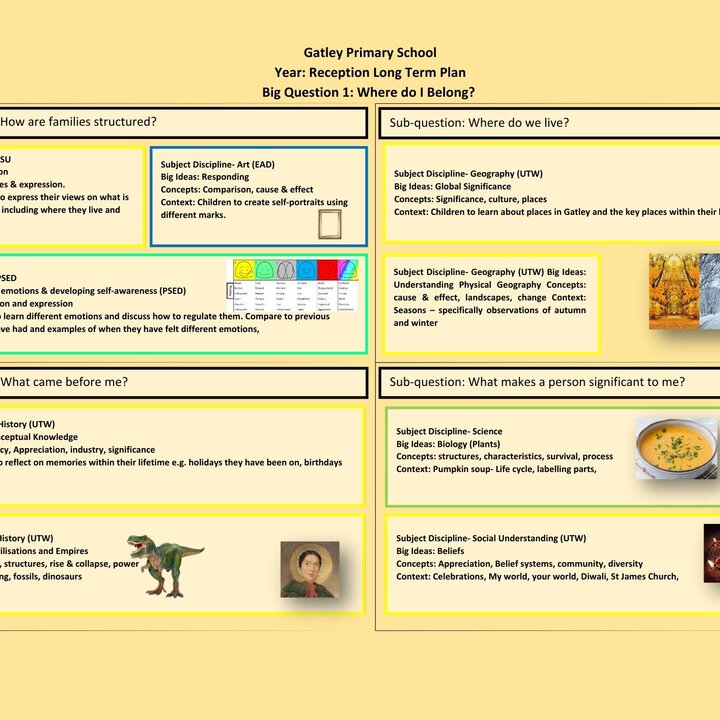 These are our curriculum maps for each year group. Each year group has a termly curriculum map which sets the context for the curriculum. To link with our curriculum intent, each map is structured using questions as a model for curiosity.