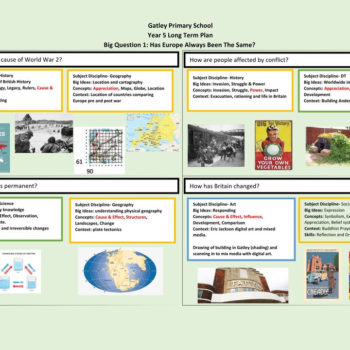 Each map has 4 quadrants and each quadrant plays an important role: incorporating prior knowledge, current world events and local links where appropriate and even enable pupils to bring their thoughts to the curriculum. Each quadrant references prior knowledge and build on this. These maps provide the structure for the curriculum for each year group, demonstrating where big ideas and concepts will be taught.